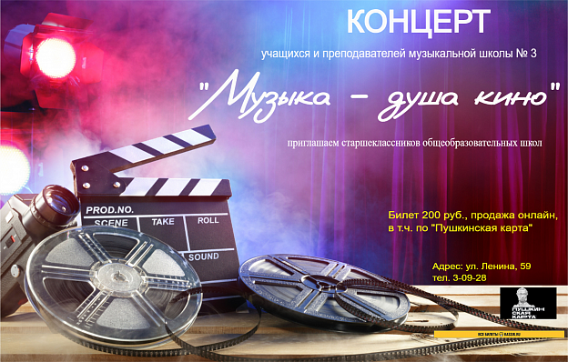 Преподаватели и учащиеся школы подготовили новую программу, в которой прозвучит музыка, знакомая всем. Любимые мелодии поднимут настроение и подарят приятные воспоминания. Зрителей ожидает много интересных выступлений. Ведущая концерта расскажет об истории создания исполняемых произведений и роли музыки в кинематографе. Прозвучит музыка из фильмов разных жанров: «Цирк», «Кавказская пленница», «Приключения Электроника», «Человек – амфибия», «Игрушка» и многих других в исполнении учащихся и преподавателей духового, фортепианного, оркестрового, вокального, фольклорного и народного отделений школы.